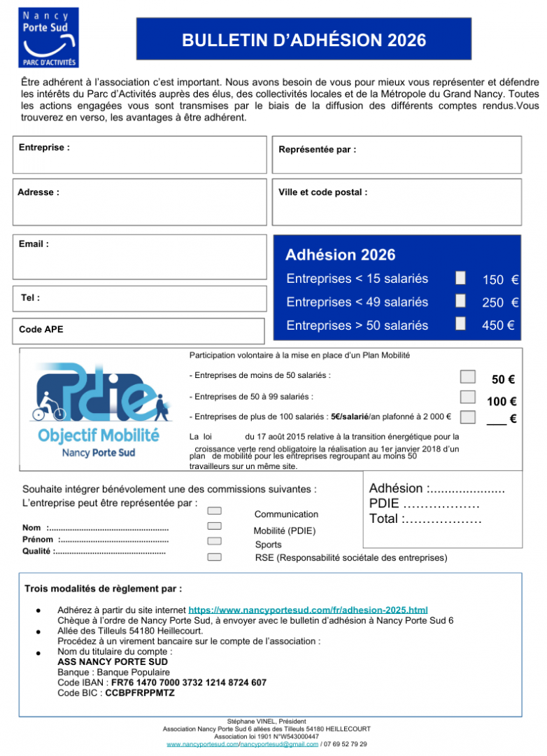 L'année 2026 approche et l'adhésion à Nancy Porte Sud est désormais ouverte.